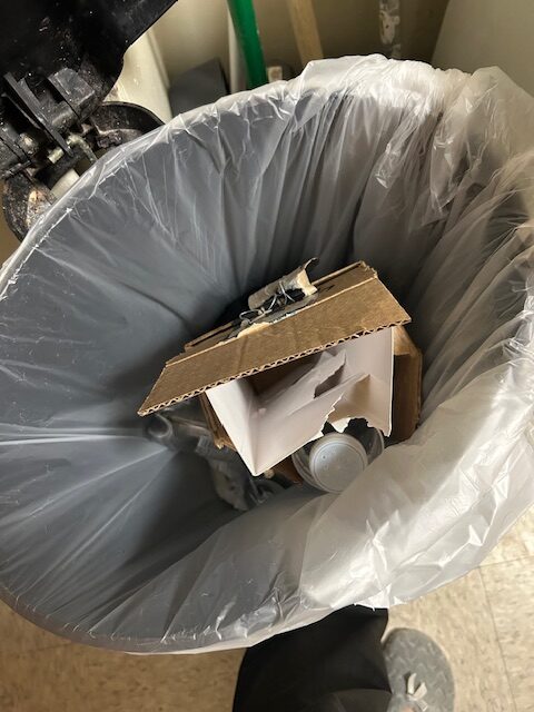 This week I took a picture of my family‘s trashcan since I’ve been home for spring break. Initially, looking at the photo one can see that this is a larger trashcan, and most of the items inside that I could see have plastic parts. I also see multiple different packaging items that have been thrown away. It is relatively concerning, knowing that there are recyclable items in the trashcan, and also knowing that there is some food waste already in there meaning the recyclable items are essentially contaminated.