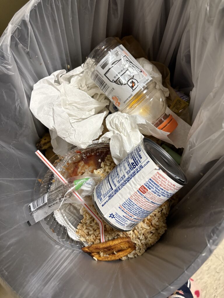 In this week’s image, I see more food waste than I normally do. There are remnants of leftovers and some kind of takeout container. This makes me think about my other friends who have a specific bin for composting and how their familiar practices vary from mine. I do think that cultural background and family income contribute to the way families dispose of their waste. I also see tissues and other plastic materials in the bin. Overall, I think there is less actual trash this week, but it has highlighted new things for me.